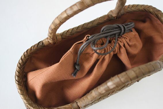 籠本体は海外産ですが巾着の生地と縫製、そして取り付けももちろん国内です。